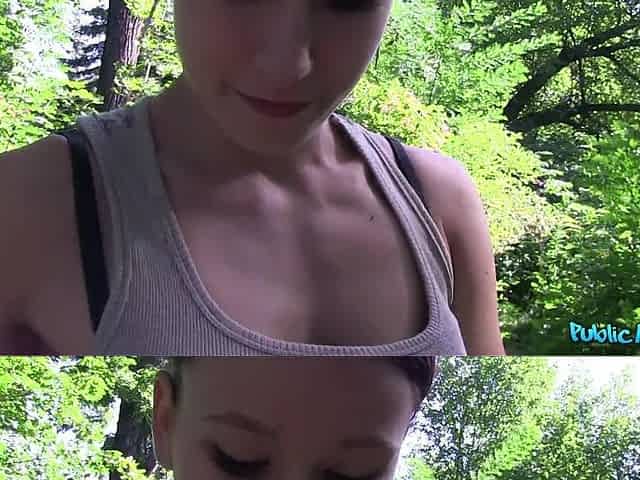 Skinny 19yo European Blonde Fucked Outside with Cum in Mouth
