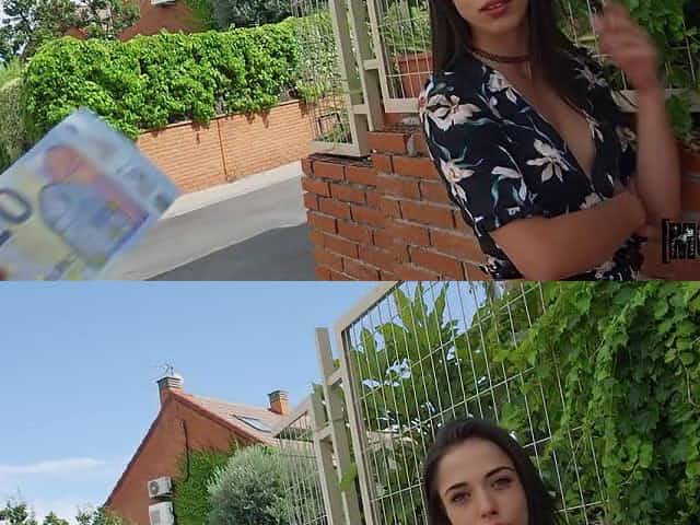 Beautiful brunette teen with nice tits Adriana Luna fucked for cash