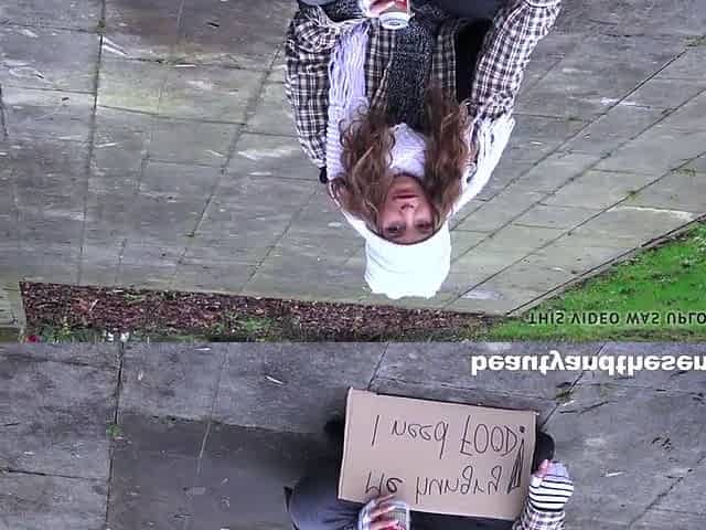 Some guys walking on street and picked up girl for the cash. They got really sexy fresh brunette, who gave them a blowjob outdo