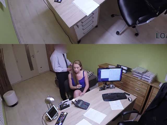 LOAN4K. Cutie has to spread legs in office for solving