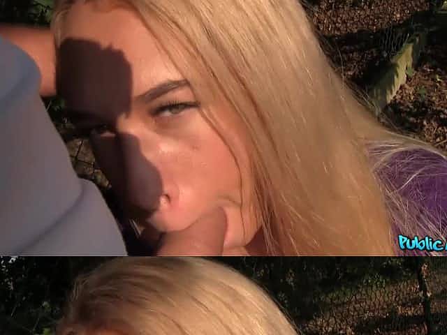Skinny young blonde sucks big dick before having hardcore fuck for cash