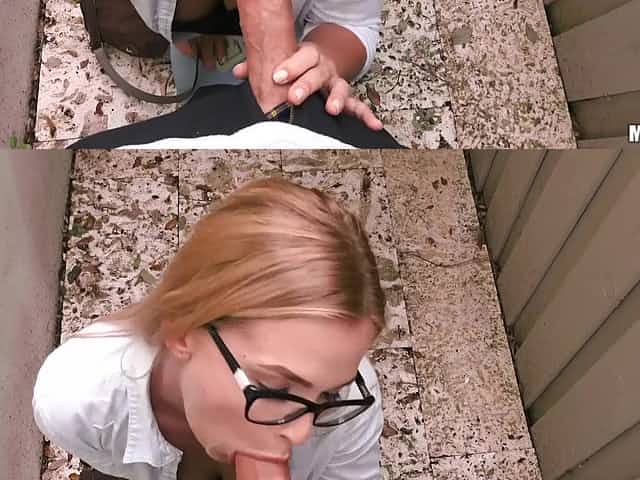 Gorgeous coed in specs gets fucked for cash by a stranger. Pt.1