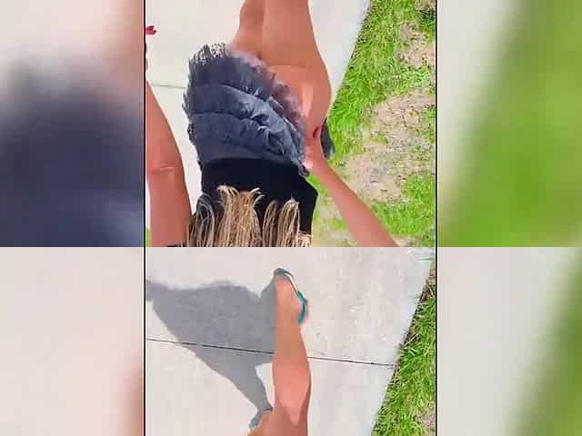 A street whore in blue skirt but with no lingerie needs money so she goes to the park with a tricky horney driver whose balls a