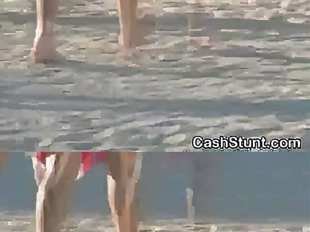 Euro hottie flashes her ass for cash