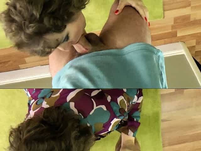 Willing husband indulges in slurping cum off Marilyn Johnson's face