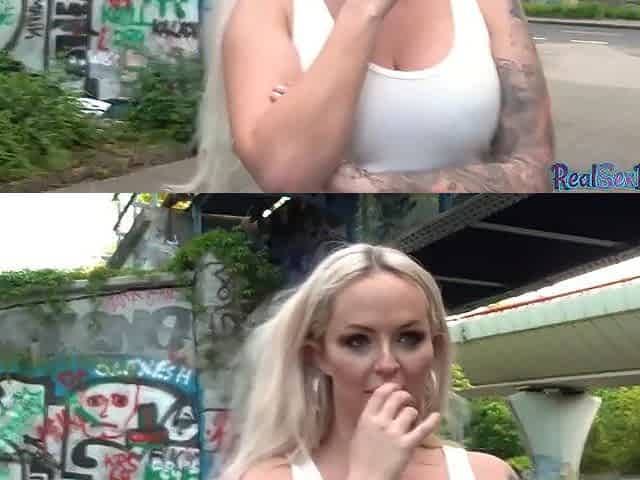 Deepthroating POV tattoo teen gets outdoor fuck for money