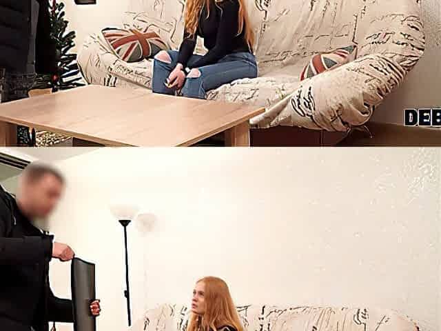 Finally, blonde babe Maria Hurricane agrees to pay for sofa
