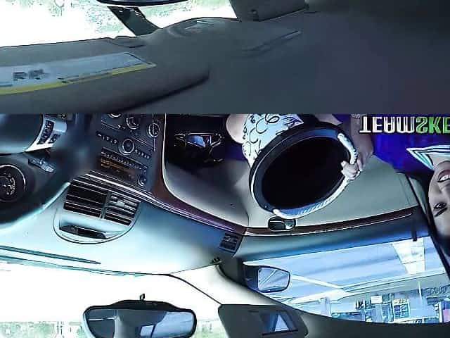 Inked brunette girl is fucking with a guy in the car