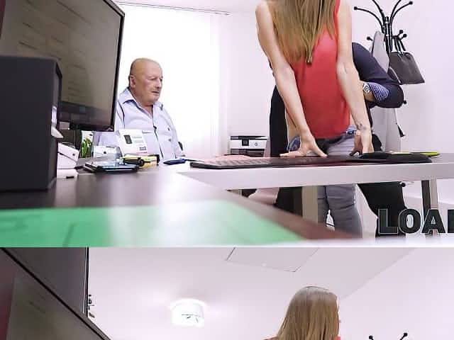 LOAN4K. Blond angel can not pay rent so that babe goes to the bank for a loan