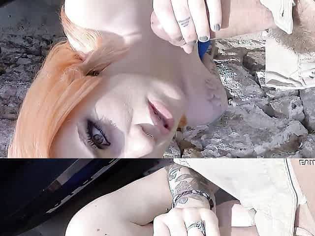 Hwoman Begging on the Street While Playing Guitar Records Porn for Money. Leine Rebel, the Anti-establishment Fakings