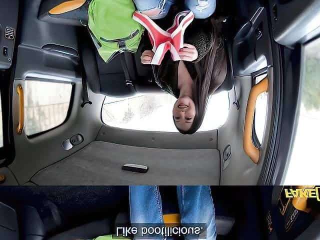Beautiful brunette Adriana Rys gets impaled on the backseat