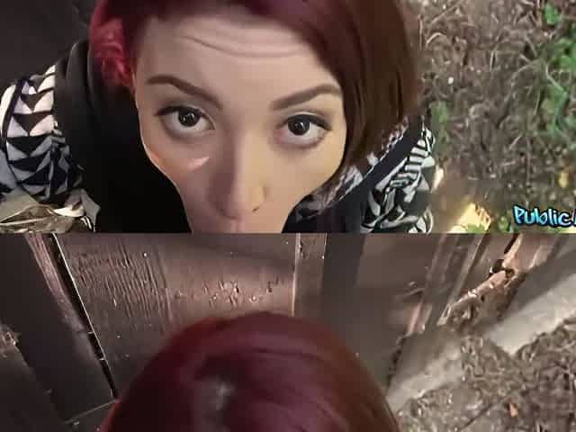 Lucia Nieto gives blowjob outdoors to get some extra cash