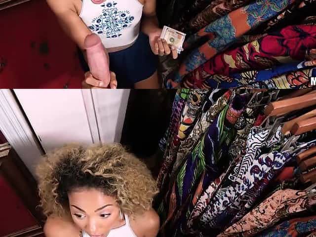 Mulatto babe Xianna Hill gives her head and gets fucked for cash in public place
