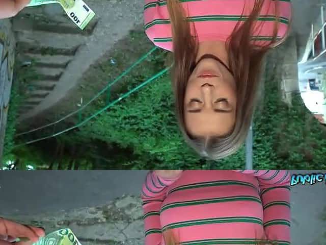 Random brunette hair got some money from a stranger to suck his ramrod and let him screw her