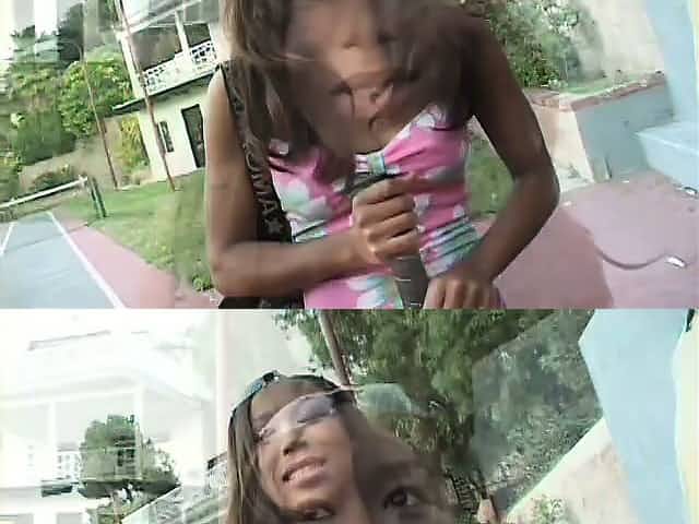 Ebony cutie with lovely big tits sucks and fucks a dark pole for money