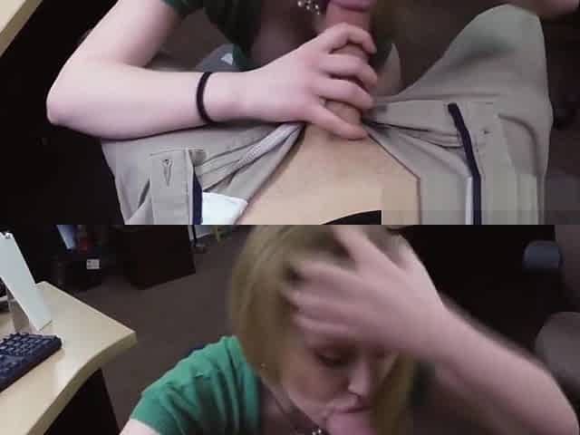 Amateur babe filmed sucking big cock for pawn shop cash