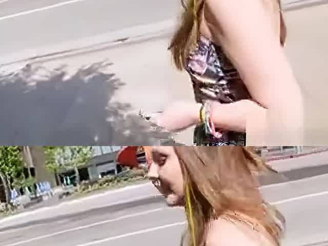 Needing Cash, She Strolls In The Park In Sexy Bikini