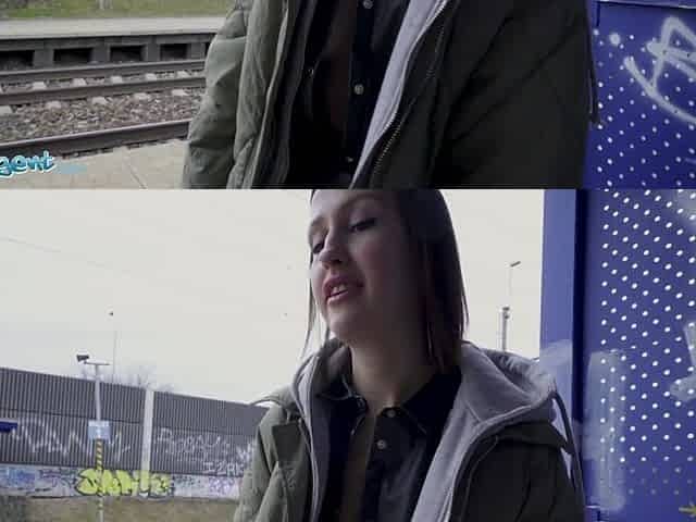 Public Agent Teach Station smoker gets her melons out to pay the precious