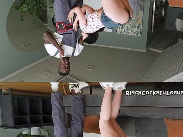 Petite spinner bends over for plumbers BIG BLACK PENIS
