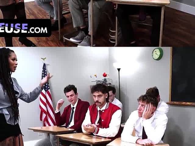 No thing Beats the Summer School Heat Like Their Large Dongs Inside the Teacher's Throat