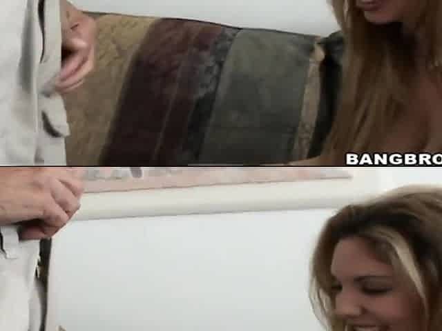 Blonde babe sucks a monster cock then gets fucked to a cumshot