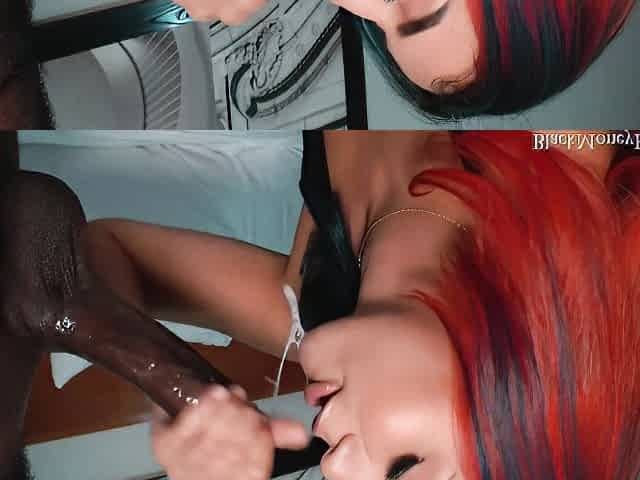 INTERRACIAL THREES0ME WITH JILIAN - redhead Jillian Brookes deepthroats monster cock