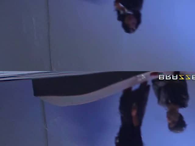 Mega busty brunette babe blows sugary penis of her cute 4 eyed stud in bathroom