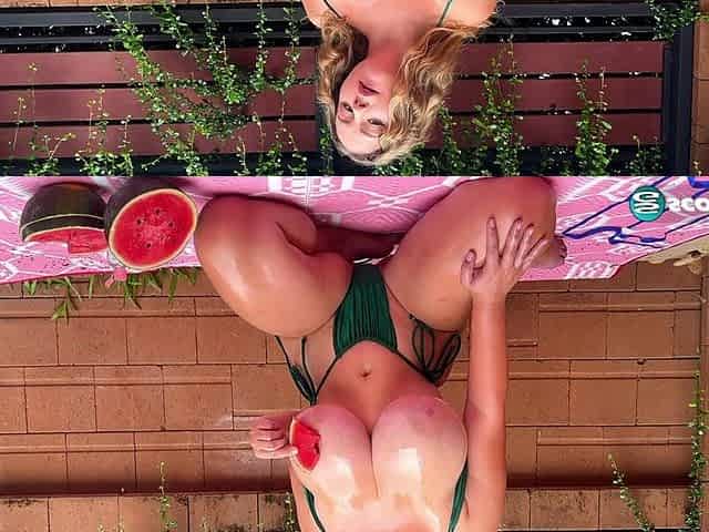 Monster tits Holly Garner outdoors with watermelon - Solo - Holly