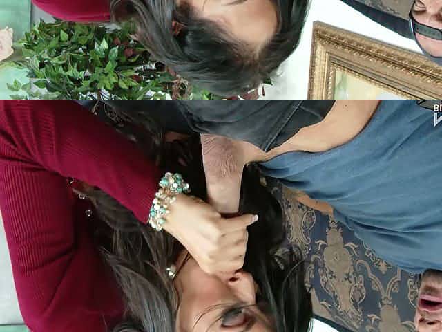 Mega busty brunette mommy Angela White gets pleasured with classy tongue job on her birthday