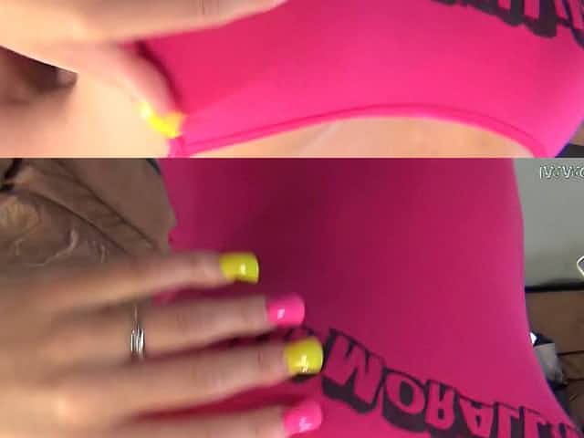 Mega busty whore is playing with her perky nipples on a pov camera