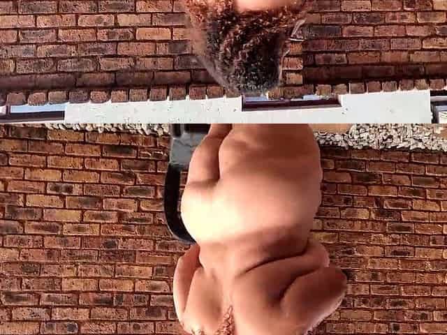 SA colored big beautiful woman chain smokin' cigarettes nude outside in the garden