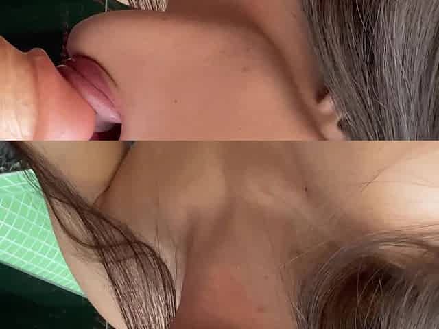Colored hair skinny teen is giving a seductive blowjob to a big cock in the motel