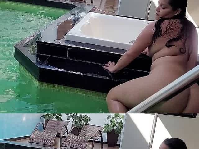 Gal with a large butt passionately screws in the jacuzzi in a motel in Cali