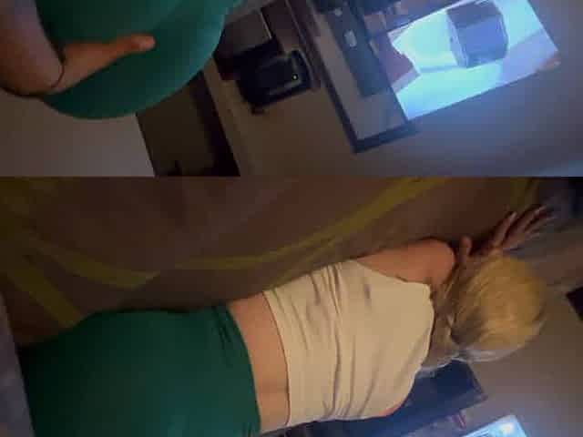 Banging my wife's mouth as that babe hangs off the side of a motel daybed