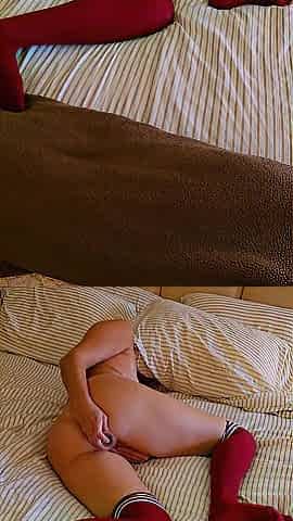 Morning masturbation ended in a loud climax. I fondle my taut snatch.