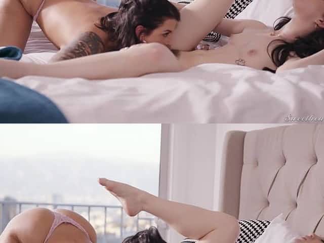 Two hot lesbians, Rilee Marks and Claudia Valentine, enjoying each other in a steamy encounter.