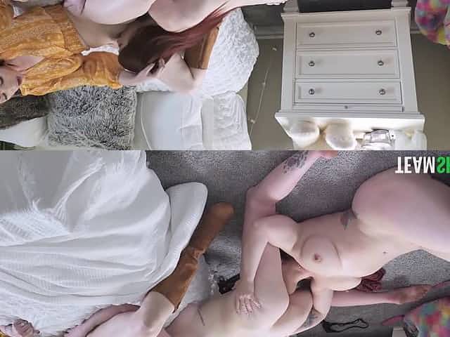 Ginger girl is fucking her stepdaddy while mother is away