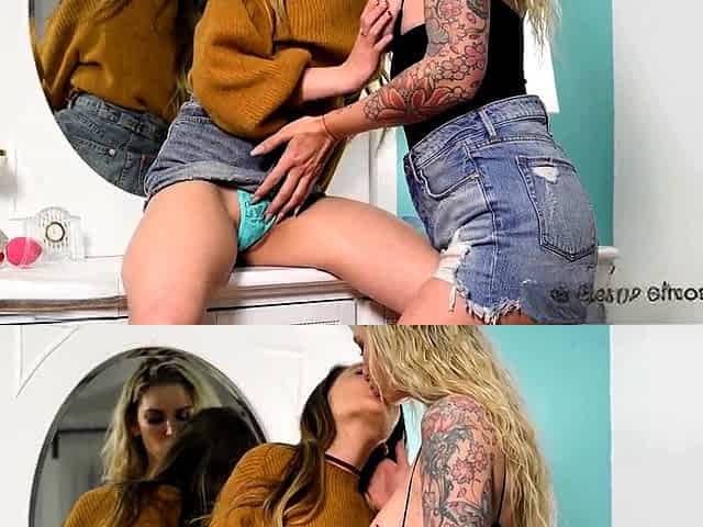 Kendra Lust and Lola Foxx enjoy some steamy girl-on-girl fun at mom's place