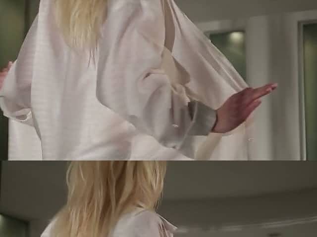 Blonde hottie with fake tits gets a titjob from her partner