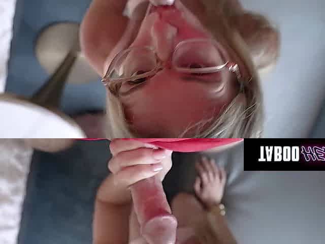 FEMINGE 4K: The stepdaughter's bazookas are being sucked by the golden-haired stepmother