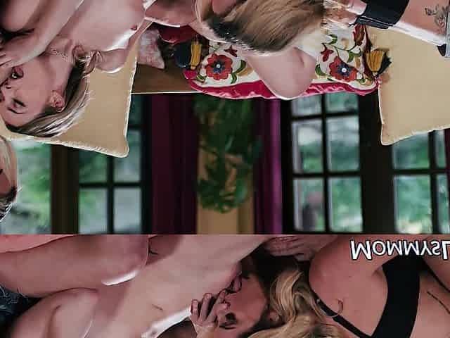 Blonde Lily topped by Horny stepmom Kayla Paige and friend