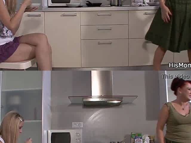 His mommy and teen go lesbian on kitchen
