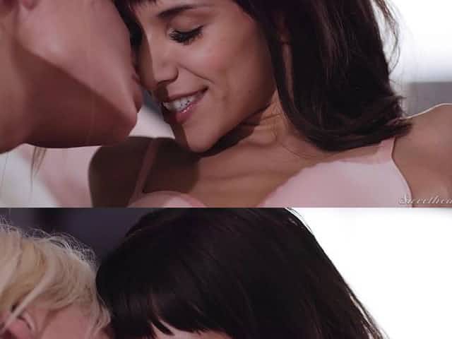 Kinky lesbian girls making out tenderly starting steamy sex session