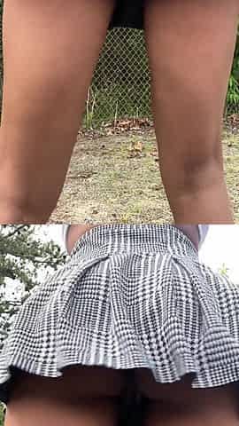 Ebony teen twerks upskirt shaved pussy and gets multiple squirts from public viewing