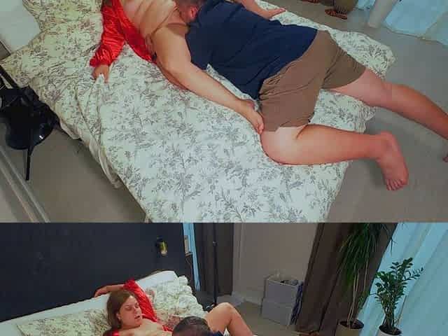 "Amazona inversa" - Pareja amateur probando poses de Kamasutra