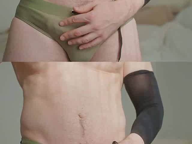 Buff Butch Tattooed Dyke Rubs Plays with Fat Juicy Pussy After the Gym,Jockstrap, Lesbian, Muscles