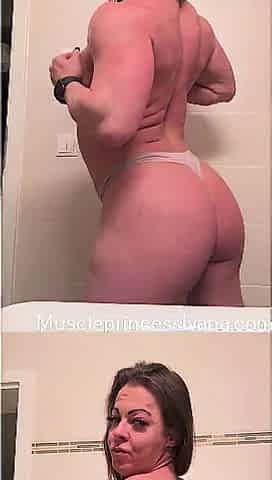 Big Beautiful Bodybuilder Rubs Oil on Her Muscles