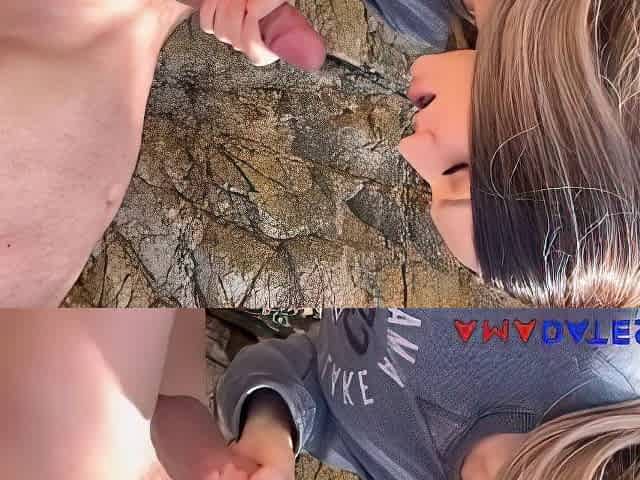 POV adorable young babe swallows every drop