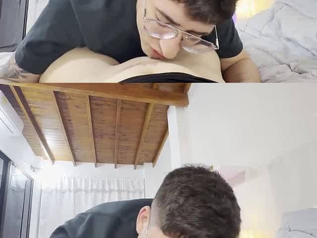 Fucked his stepsister in tight pussy after licking her holes until girlfriend came home