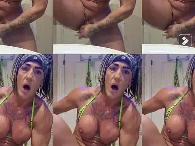 Excited Gym Hottie Rubs Her Large Clitoris and Twat Lips to a Throbbing Climax